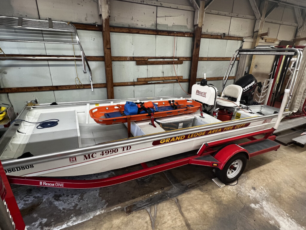 Boat 1 is a 2008 16’3″ Rescue One Connector Boat with a 40hp E-Tec Evinrude Jet Out Drive Motor